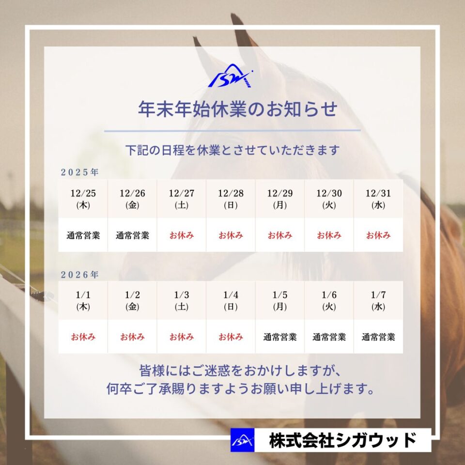 誠に勝手ながら、弊社では下記の日程を年末年始休業とさせていただきます。