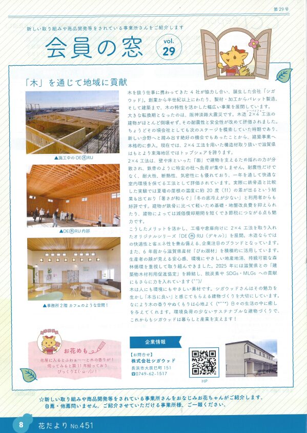 【メディア掲載】長浜商工会議所会報「花だより」の『会員の窓』で弊社が紹介されました