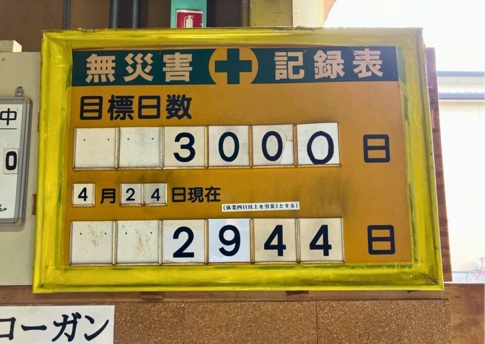 しっかり道具を整備し、まずは「無災害3000日の達成」に向けて安全作業、安全な環境を毎日積み重ねていきたいと考えています。