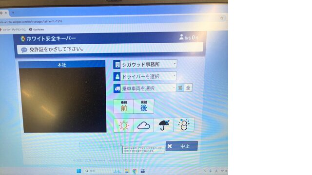 社用車を使用するときは社内パソコンでアルコールチェックを行ってから出発してもらっています。(対面点呼)